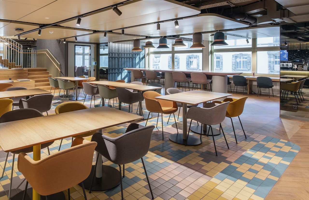Create your own unique BuzziHat by choosing from 4 sizes, 4 metal shades, 4 metal ring colors, and 375 fabrics. Mix-and-match finishes fitting other furniture in the same space whether office, hospitality or lobby settings. Different sizes absorb more or less sound. The bottom hides all electrical components, while the top part acts as a high performant sound-absorbing element. Combine different sizes of BuzziHats for the ideal acoustic solution.